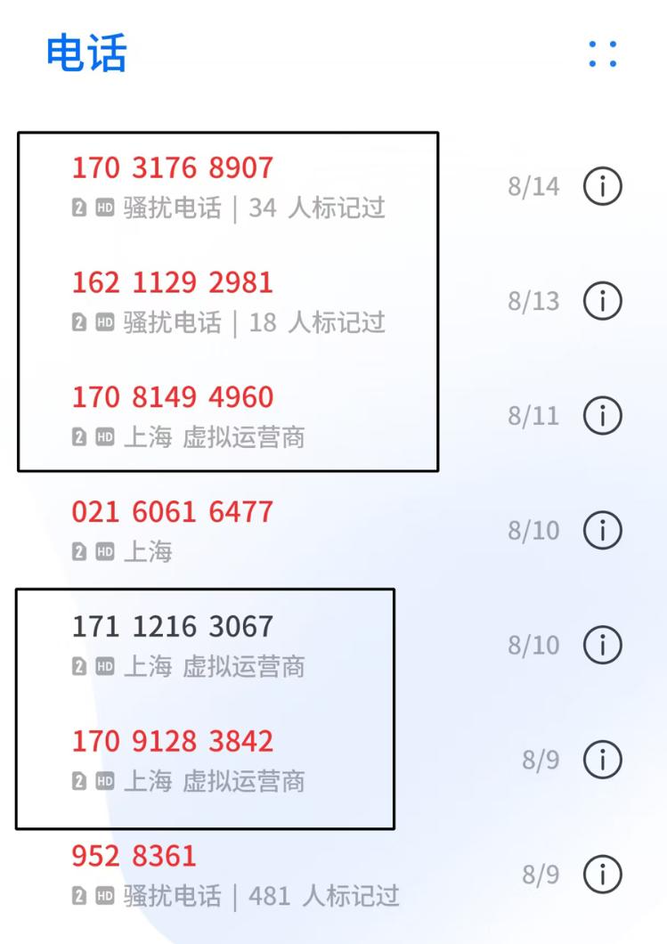 “162”“170”“171”……对这些号码开头的虚拟运营商手机号(下简称“虚拟号”),大众并不陌生,它们在手机上出现时,往往代表着有教育、医疗、房产销售等各类骚扰电话甚至是诈骗电话打进来了。7月底,解放日报·上观新闻曾报道过新出现的“AI外呼骚扰电话”(详情请浏览《疯狂打电话骚扰上海市民的“种植牙口腔医院”,究竟是“哪一家”?》),调查发现,虚拟号也成为AI外呼的主要工具。