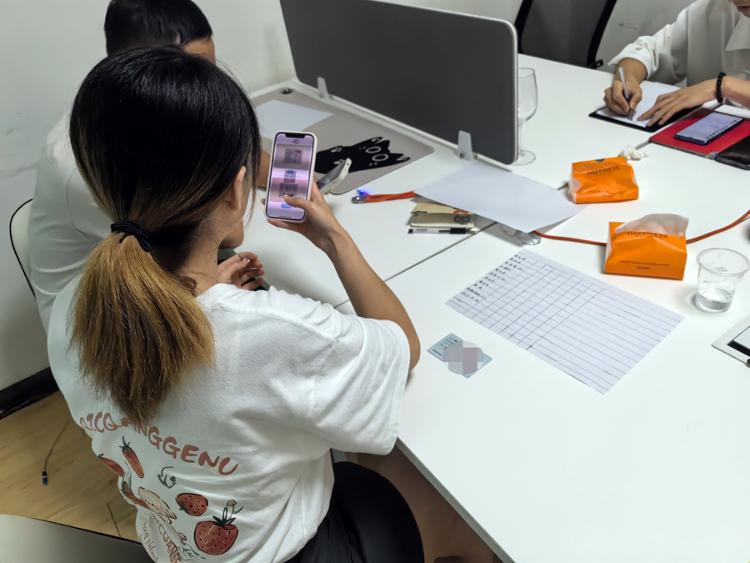 227室外面没有任何标牌,推开玻璃门是一个大房间,连着几个小房间。大房间摆着一张大会议桌和大量的椅子,靠近门侧摆着的白板上面用记号笔写有“App推广工作室”字样。记者数了下,算上带路的白衣男子,这个工作室共有员工6人,其中一名手臂纹龙的男子被称为“老板”。白衣男收取了大家的身份证一一登记后,老板这才告诉大家,当天除了需要配合下载App并完成注册外,还要使用自带的银行卡为公众号完成实名认证,以及每人要开通30余张虚拟号。为了打消大家的顾虑,老板含糊其词地说,这些虚拟号没有实体,只是“工作室拿来刷流量的”,“就像大家打网约车时平台使用的那种号码一样”。听老板讲完后,3人表示担忧主动退出,剩下的11人组建了微信群,并按要求一一在群里发布身份证号、银行卡号、名下微信号数量等等信息。